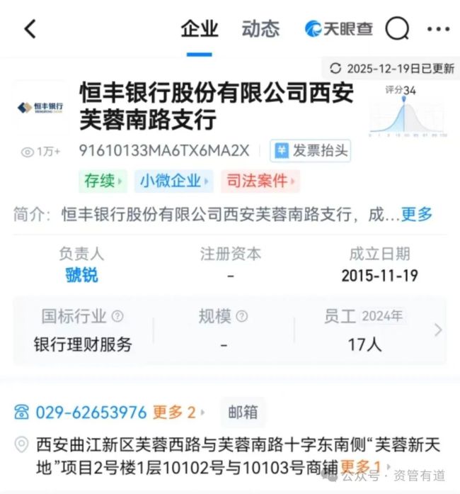 判决书((2025)陕01民终13342号)显示,该支行行长为虢(guó)某,公开资料显示,恒丰银行西安芙蓉南路支行负责人为虢某。