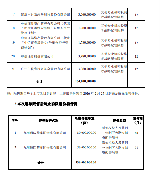 九州通REITs:将于2月27日解除限售1.64亿份