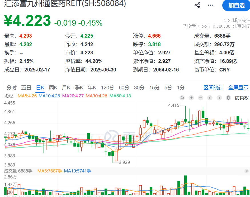 2月24日,汇添富基金管理股份有限公司发布公告称,汇添富九州通医药仓储物流封闭式基础设施证券投资基金(简称“汇添富九州通医药REIT”)部分份额将解除限售。