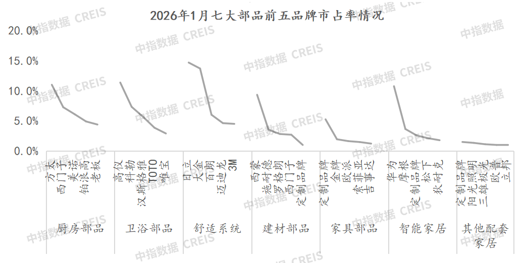 厨房部品、卫浴部品和舒适系统部品品牌前三合计占比超过20%