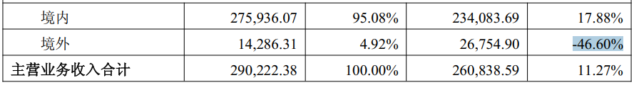 不过半年报却显示,2025年上半年境外收入锐减至1.43亿,下降了46.6%,这是境外市场也受到冲击了吗?