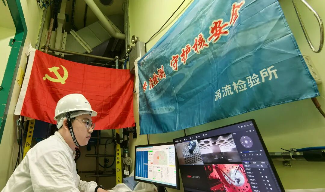 中广核苏州院下属中广核检测技术有限公司完全自主研发的国内首台余热排出换热器涡流检查定位机械臂系统,在群厂各核电基地成功应用。该技术攻克了高精度视觉定位、运动控制算法及复杂环境可靠传输等一系列难题,该机械臂的应用标志着该领域检查作业实现了从传统模式向自动化、智能化的深刻转变。在实际应用中,该机械臂系统实现了“零碰撞、零故障”的卓越表现,通过以机代人执行精准定位与操作,极大优化了工作流程,其高效率与高可靠性,有效降低作业风险。