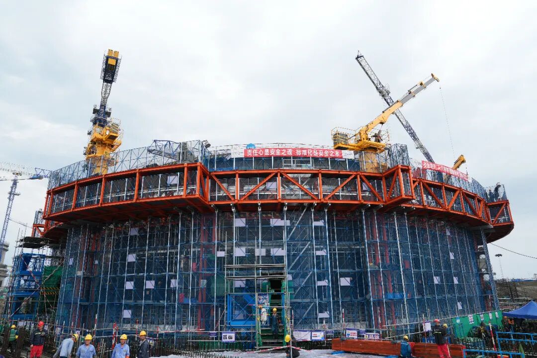 核岛反应堆厂房施工集成平台被誉为“核电版造楼机”,其应用大大提高了反应堆厂房的施工效率,通过智能化、集成化的设计理念为反应堆厂房的施工安全和质量保驾护航。2024年5月29日,作为我国核电行业首次应用的集成化施工平台,这座核电版“造楼机”在陆丰核电项目6号机组完成首次顶升。核岛反应堆厂房施工集成平台由钢平台系统、支承系统、动力系统等组成,根据施工进展,可为反应堆厂房多种施工状态提供安全可靠的作业平台,优化复杂的施工措施;通过提供内外壳立面多层作业空间,形成高效的施工流水,优化核岛工程总体施工逻辑和节奏;通过吊装设备集成及模板挂设整体提升,大幅减少反应堆厂房施工对周边塔吊的依赖,有效提升反应堆厂房及周边厂房施工效率。