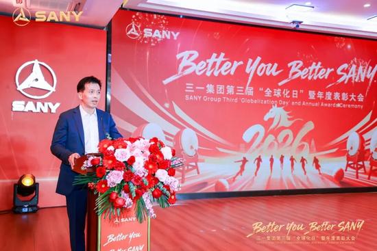 三一集团董事彭松在致辞中回顾了过去一年三一海外业务的突破性佳绩,并向全体同仁致以崇高敬意。他表示,在集团战略指引下,2025年,三一战略规划日趋成熟、“客户第一”持续强化、流程体系强筋健骨、平台能力有效搭建、海外人才加速成长;与此同时,集团加大海外资源投入,加速构建大客户开拓体系,深入推进后市场变革,取得系列成果。面向未来,三一将持续提升组织能力,破解发展难题,筑牢全球化核心竞争力。