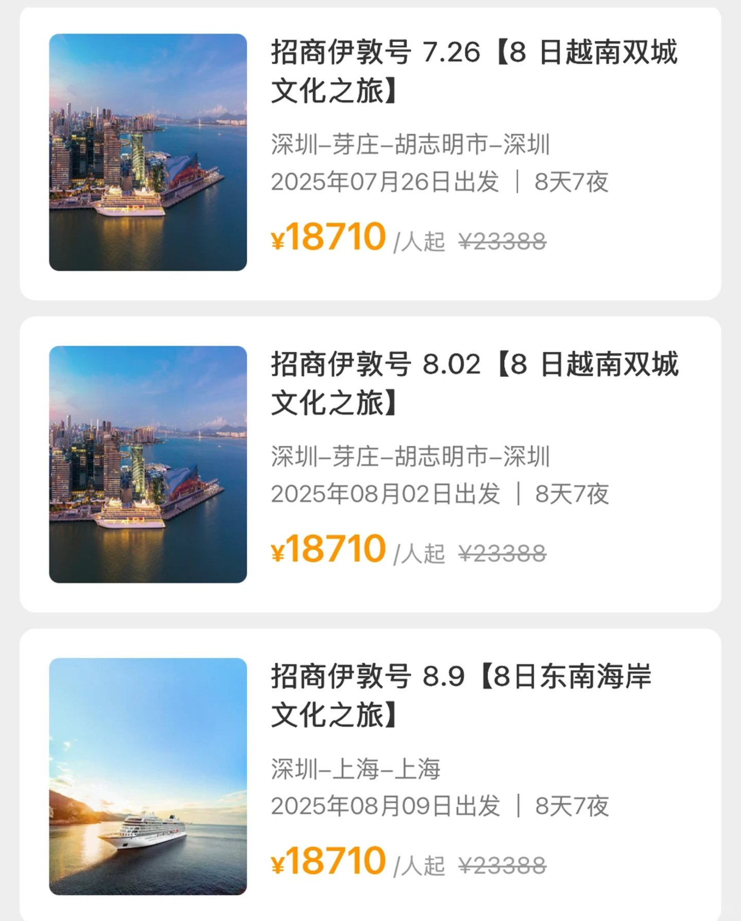 再加上市场开放之后,中国消费者的出游习惯与偏好又在发生巨变,更看重情绪价值和个性化体验,旅行的每一分花费,必须得是超值的,才能笼络他们的心。市场竞争环境那也是翻天覆地,这让价格相对更高的“招商伊敦”号也一直活得很拧巴。