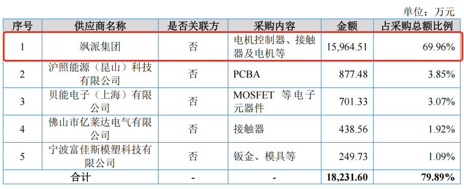 公开资料显示,飒派集团是全球领先的工业车辆与电动车辆电控系统巨头,总部位于意大利。报告期内,公司主要向其采购电机控制器等产品。