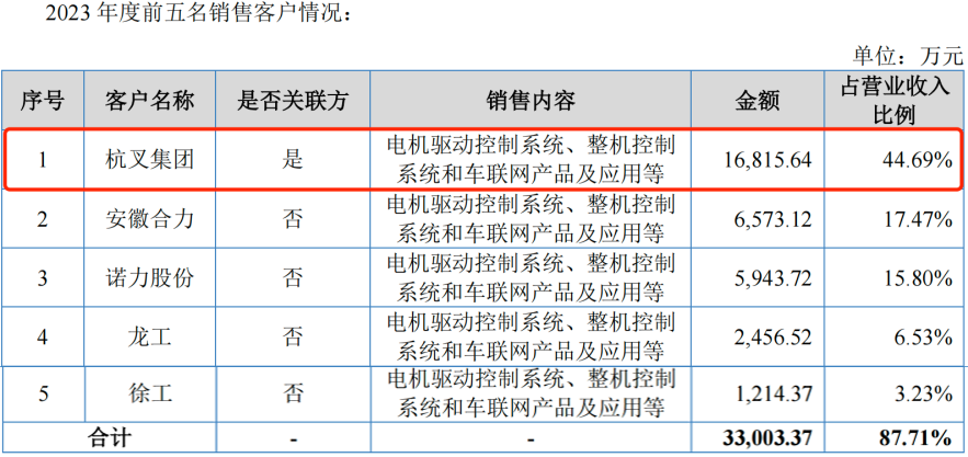 在招股书中,公司未披露对杭叉集团及其他非关联客户的具体销售毛利率,但问询函回复显示,嘉晨智能向杭叉集团销售的Ⅰ类工业车辆及相似配置电机驱动控制系统,其毛利率均高于向安徽合力、龙工、比亚迪等其他非关联客户销售同类产品的毛利率。