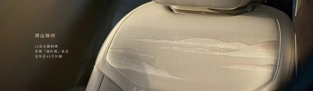 蔚来创始人、董事长、CEO李斌表示:“ES9的内饰设计,是应用中国文化提升高科技产品的品味非常积极的一次尝试。”中国文化精髓与创新科技在ES9的座舱内完美融合。「风生水起」音响罩盖与内置的「水光潋滟」音响氛围灯,让旋律与光影交织;超过9米的「天光云影」六层动态氛围灯,配合首发「日影时序」等九大艺境空间主题,在48英寸Skyline数字天际线与三块顶级3K双层AMOLED屏幕的联动下,营造出充满人文气息的沉浸氛围。ES9地平线特别版汲取中国山水画的美学灵感,将天地之美融入专属内饰主题中,以传世千年的非遗工艺苏绣,用近40万个针脚细密交织呈现出壮美的「河山锦绣」图。