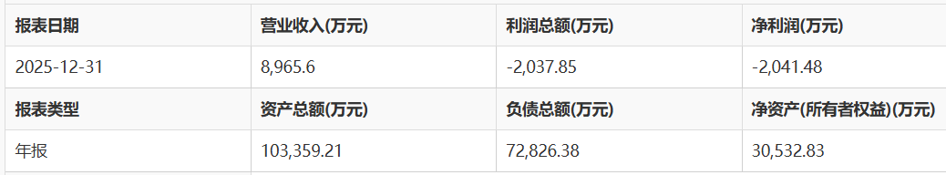 然而,庞大的用户基数并未转化为盈利。财务数据显示,天府通2025年实现营业收入8965.6万元,但净利润亏损2041.48万元。截至2025年末,公司资产总额10.34亿元,负债总额7.28亿元,净资产3.05亿元。