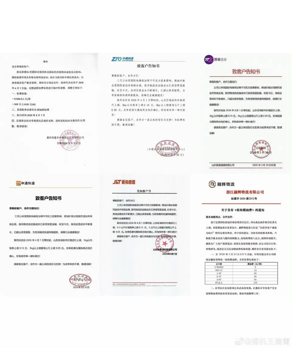 几家公司通知里也写得很直白,油价涨了,运输成本增加,所以调价。
