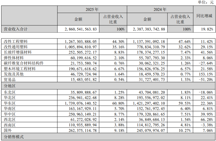 3D打印材料作为新孵化业务,已建成专用生产线,正从消费级向工业级应用拓展;塑木型材营收1.91亿元,同比增长21.58%,受益于海外绿色建材市场复苏;热塑性弹性体(TPE/TPV)营收6020万元,同比增长8.06%,在汽车密封和医疗领域的应用进一步深化。