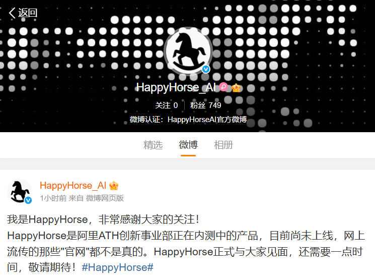 HappyHorse官微发文:确系阿里团队,正式发布尚需时间