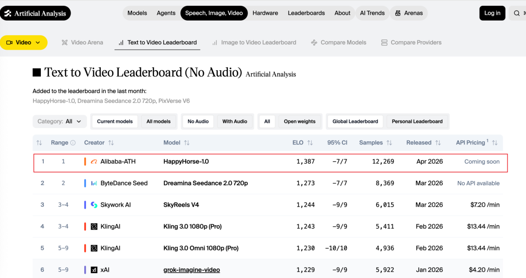 近日,一款名为HappyHorse的AI视频生成模型,悄然登顶全球知名AI基准测试机构Artificial Analysis榜首。