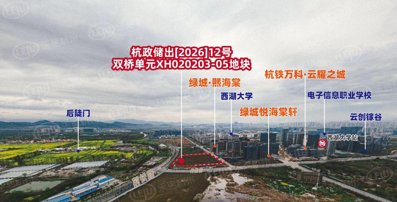 杭政储出[2026] 12 号地块,即双桥单元XH020203-05 地块,就在绿城·悦海棠西侧,西面靠近后陡门。