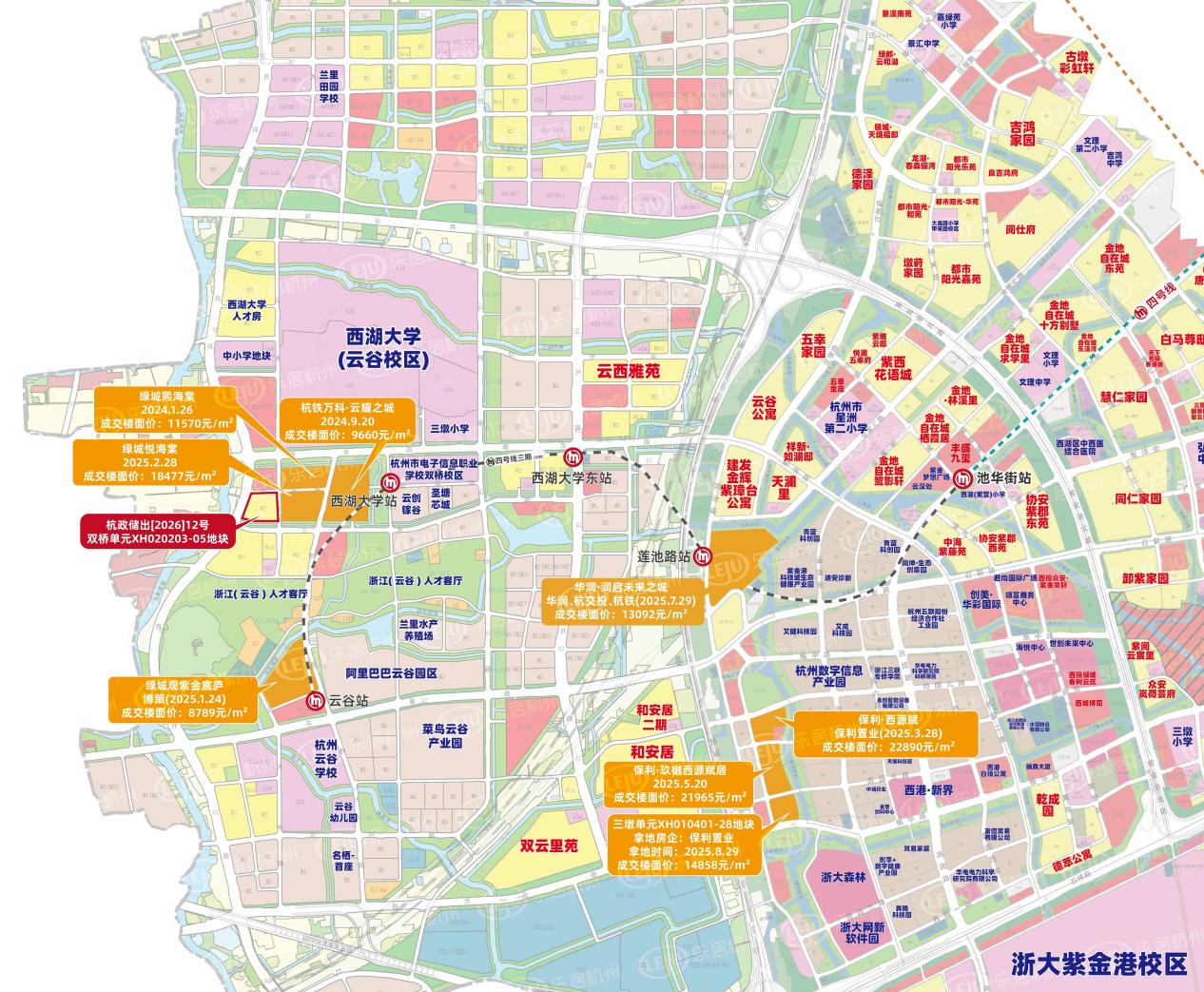至此,云谷板块地价迎来新高。此前板块的最高地价,是地块东边的悦海棠,由绿城于2025年1月竞得,楼面价18477元/㎡,容积率2.3。