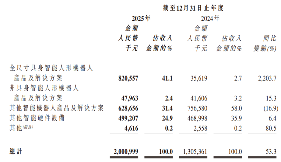 最新财报显示,公司2025年营收首次突破20亿元,同比增长53.3%;全尺寸人形机器人收入暴增2203.7%,从3500万元跃升至8.21亿元;毛利率从28.7%大幅提升至37.7%;净亏损收窄31.9%至7.90亿元。