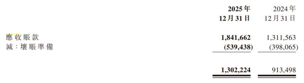 但这些订单的真实质量如何?财报披露,截至2025年底,优必选应收账款高达18.42亿元,同比增长40%,已接近全年营收规模;同期,坏账准备为5.39亿元,计提比例接近29%。公司解释称,主要因“个别政府相关客户应收账款延期支付”。