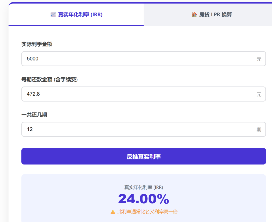 据金石随笔计算,利率正好24%,利率确实达到了监管硬红线上限。该用户投诉:本人借款时(2024年11月)1年期LPR为3.45%,对应法定保护上限仅为年化13.8%,该平台收取的利率远超国家法定红线,属于严重违规收取高额利息,必须将超收利息退还。