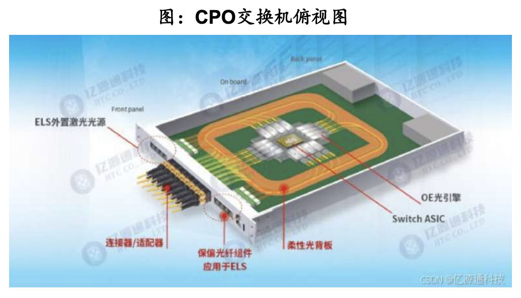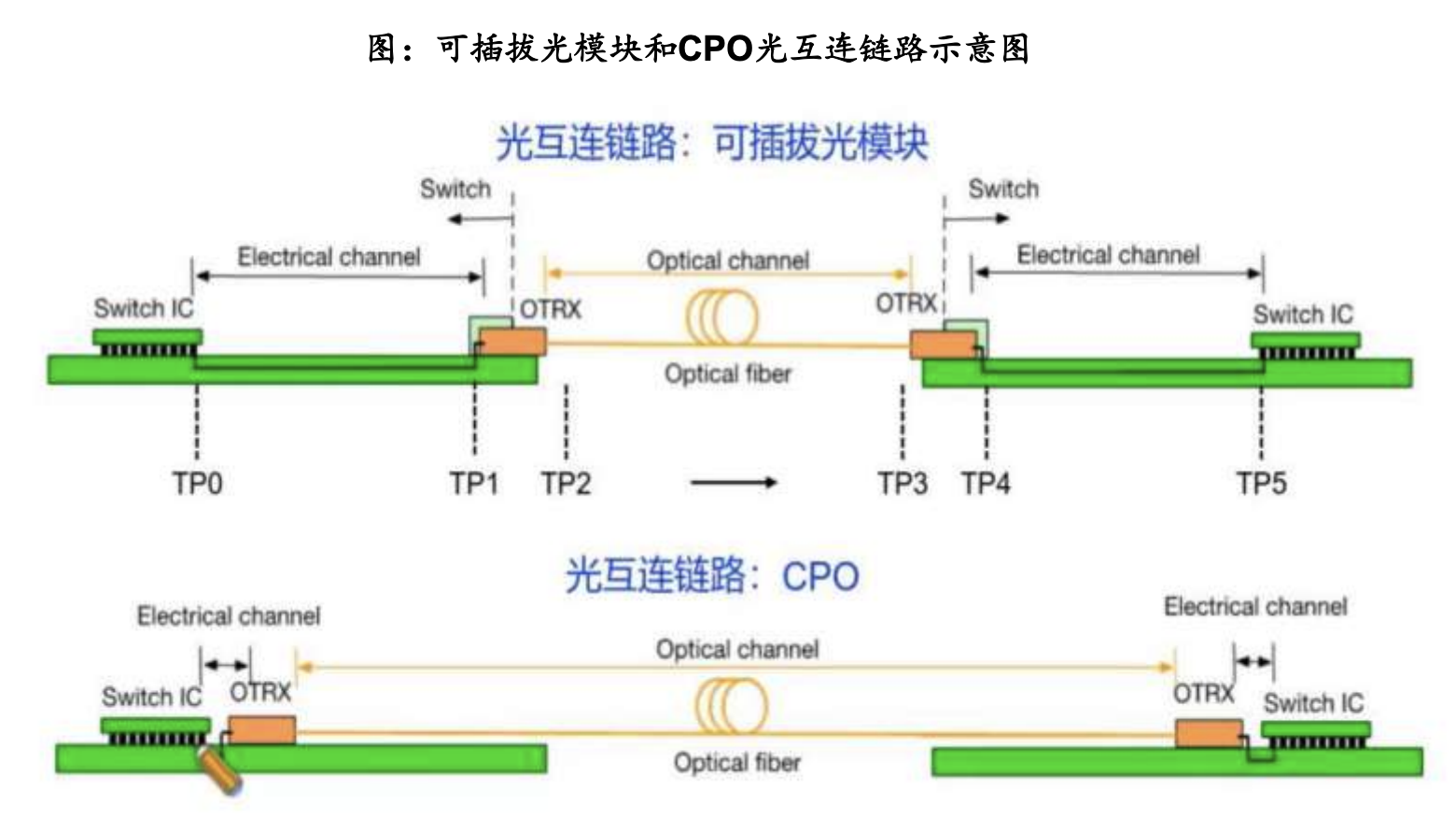 CPO(Co-packaged Optics,光电共封装)通过将光引擎与交换机ASIC芯片集成封装在同一基板上,从物理层根本上缓解了传统数据中心网络架构的瓶颈。