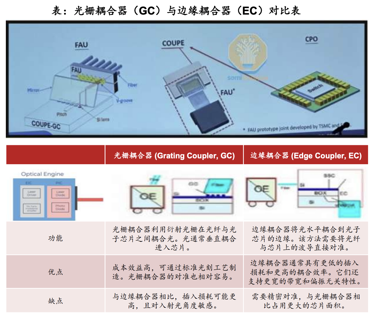 一是分工清晰、已率先参与CPO交换机厂商联合研发或有订单预期的环节,包括大功率CW光源、FAU及ELS模组;
