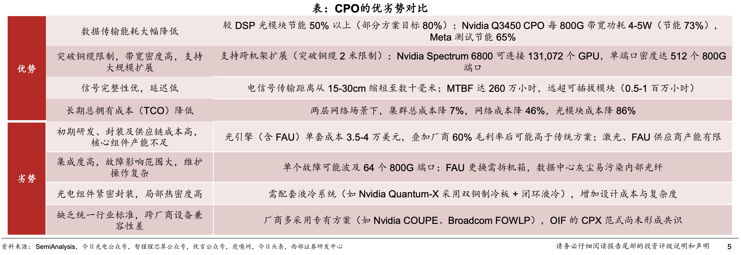 一是大幅降低功耗,较DSP光模块节能50%以上,英伟达Q3450 CPO每800G带宽功耗仅4-5W,节能幅度达73%;