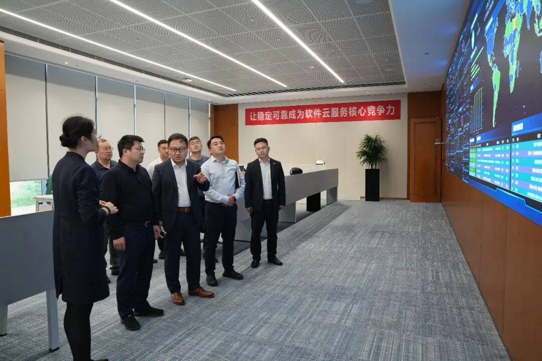 黄斌一行先后参观华为湖南区域总部迎宾花园、员工健身房、软件全球运维中心、长沙研究算办公区、培训中心及文化长廊,详细了解企业生产经营、技术研发、产业布局及文化建设情况,重点听取智慧高速、AI赋能、大数据应用、自主创新等方面的实践成果介绍。在软件全球运维中心,调研组现场观摩IOC作战室大屏演示,深入了解华为在基础设施数字化、智能管控、全场景智慧化运营等方面的技术方案与落地成效。