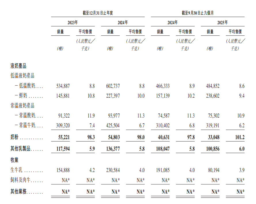 君乐宝将战略重心从传统的奶粉和常温奶,转移至更具增长潜力和盈利空间的低温赛道后,该品类逐渐成为其增长的重要引擎。招股书显示,其低温液奶业务收入占比从2023年的35.9%跃升至2025年前三季度的42.5%,已成为第一大收入来源。