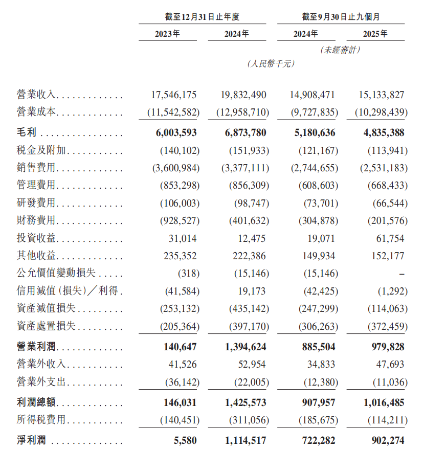 尽管2025年前三季度资产负债率有所回落,但仍处于高位,利息支出持续侵蚀利润空间,2023年财务费用高达9.29亿元,其中股东特殊权利相关金融负债利息支出5.54亿元,大幅拖累了净利润表现。