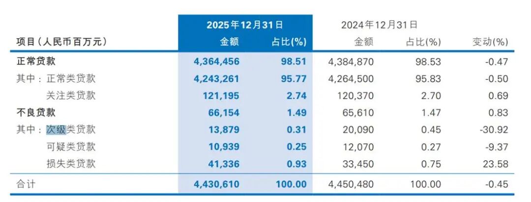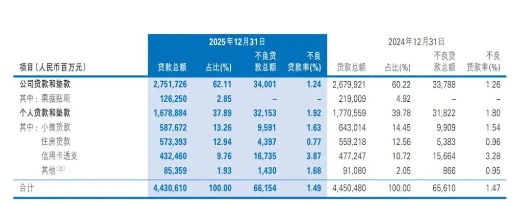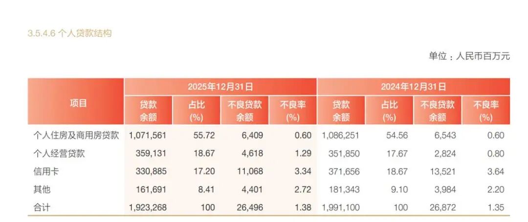 另2025年,该行信用卡新生成不良贷款393.01亿元,同比减少0.74亿元。