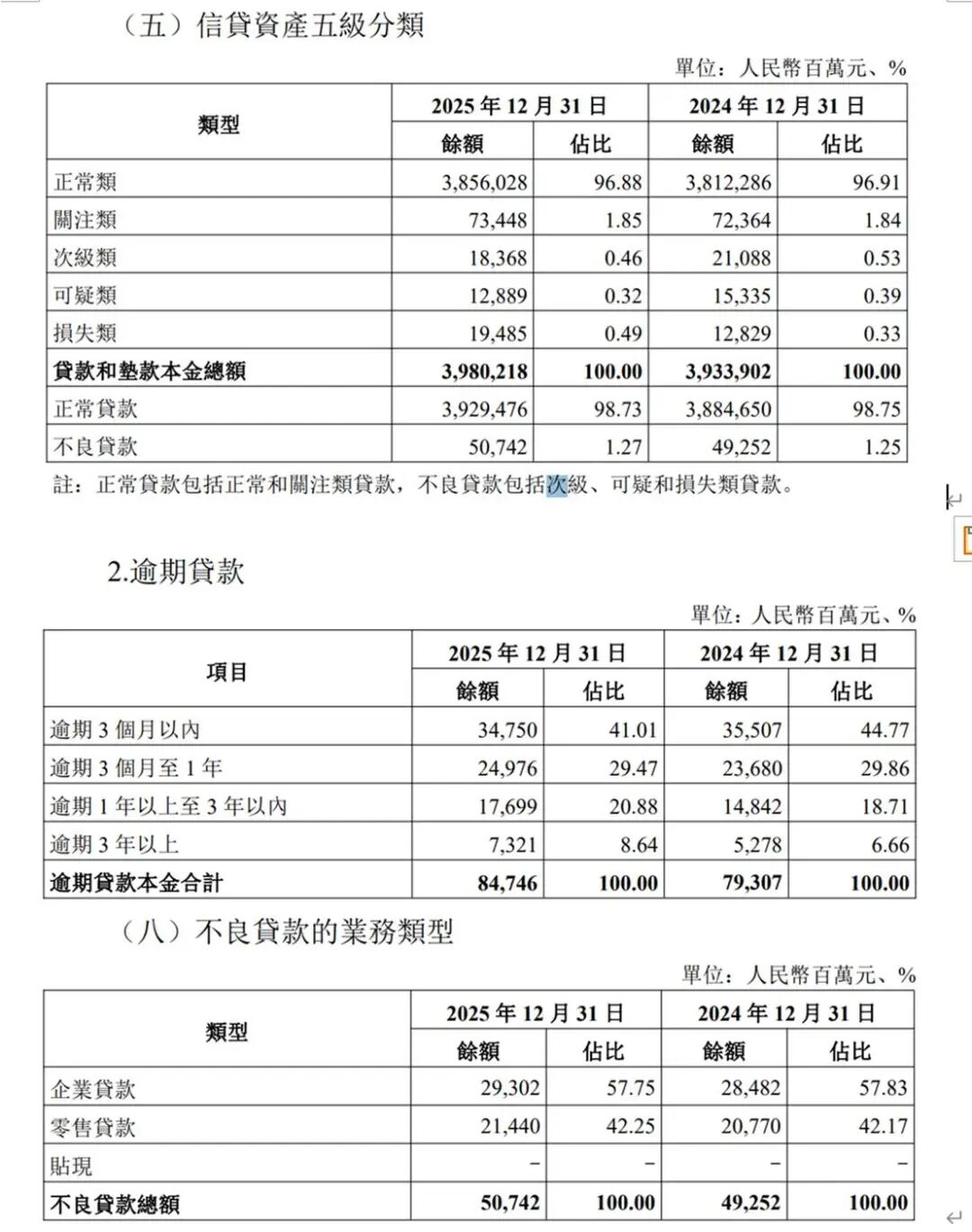 次级贷款余额289.85亿元,可疑贷款余额81.45亿元,损失类贷款271.21亿元。