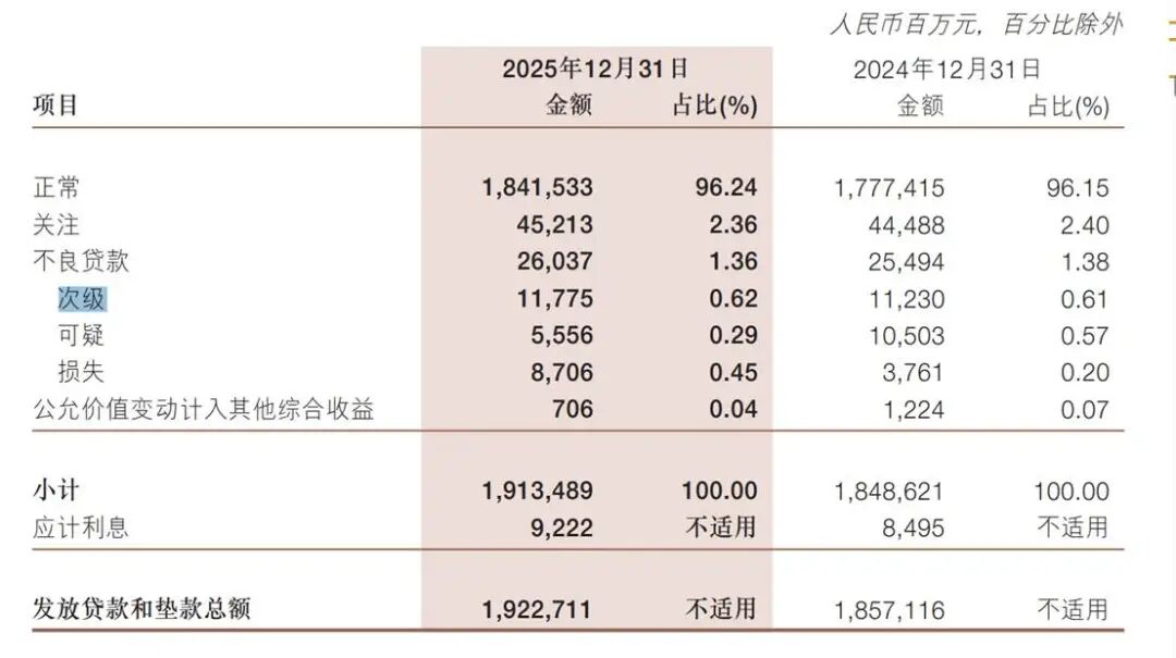 另截至2025年底,浙商银行次级类贷款金额117.75亿元,可疑类贷款金额55.56亿元,损失类贷款余额87.06亿元。