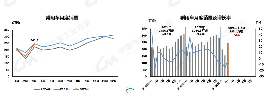 1-3月,乘用车产销分别完成590.9万辆和593.4万辆,同比分别下降9.3%和7.6%。其中国内销量401.3万辆,同比下降了23.4%——近四分之一。