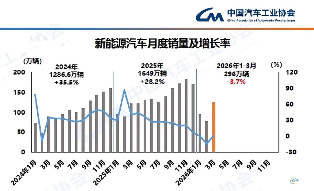 而累计数据来看,1-3月,新能源汽车产销分别为296.5万辆和296万辆,同比分别下降6.8%和3.7%——在新能源商用车18.3%的增长拉动下,总体稍好于大盘数据。