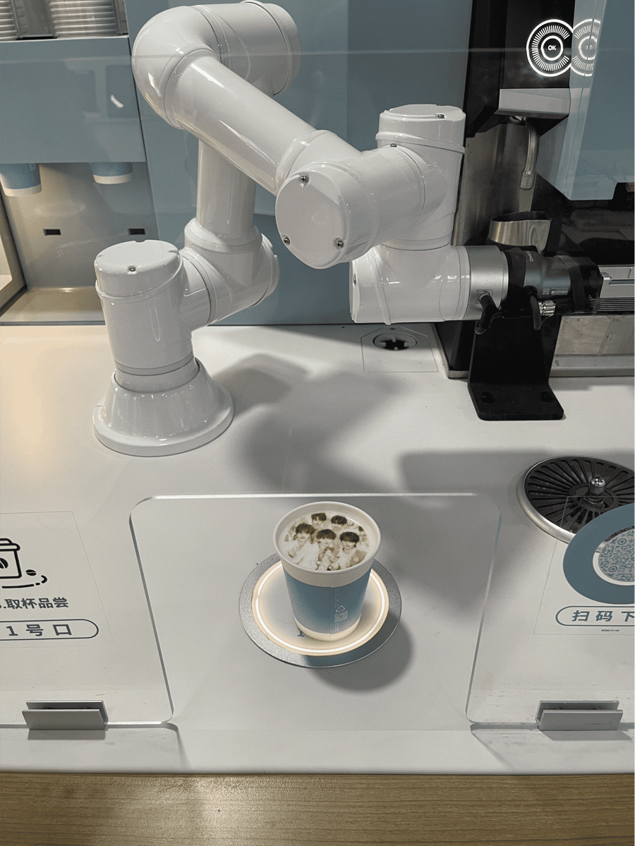 通过AI将咖啡冠军经验数字化、配方代码化、步骤参数化、手艺轨迹化——研磨颗粒度控制在50-500微米,奶泡绵密度达60%-70%黄金比例。全球首款同时实现“现磨+拉花+3D打印+AI黄金值”的机器人。消费者可上传照片图文,几十秒生成可食用奶泡艺术。磨豆技术保留咖啡豆99.99%原始芳香,世界咖啡大赛评委评价其为“唯一能让精品咖啡豆‘原味绽放’的机器人”。口感实测媲美Peets、Bluebottle、Manner、Mstand等一流品牌。