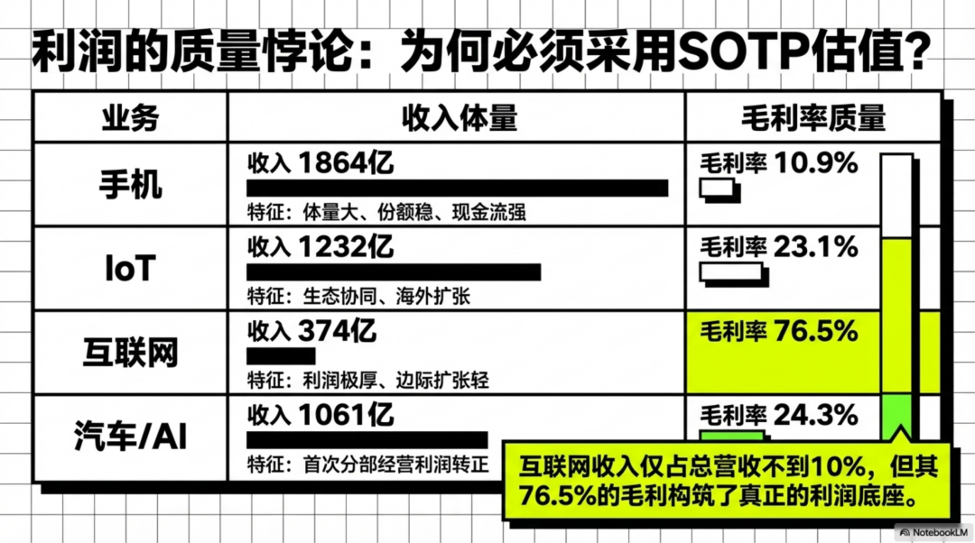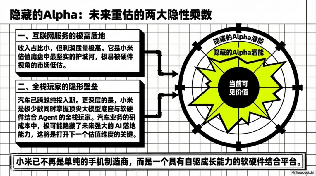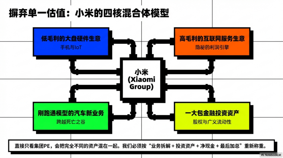 小米不是单纯的手机股,也不是纯互联网股。它更像“硬件现金牛+高利润互联网+已跑通的汽车新业务+一包金融投资资产”的混合体。