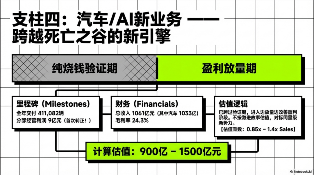 4)汽车/ AI 新业务:约 900 亿–1500 亿元