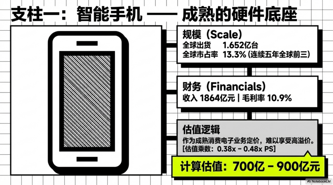 但它本质仍然偏硬件,所以我给它高于手机、低于互联网的倍数,大致 0.8x–1.05x PS: