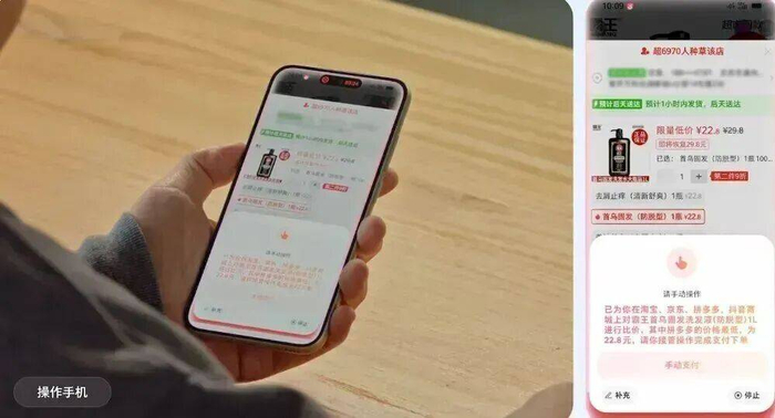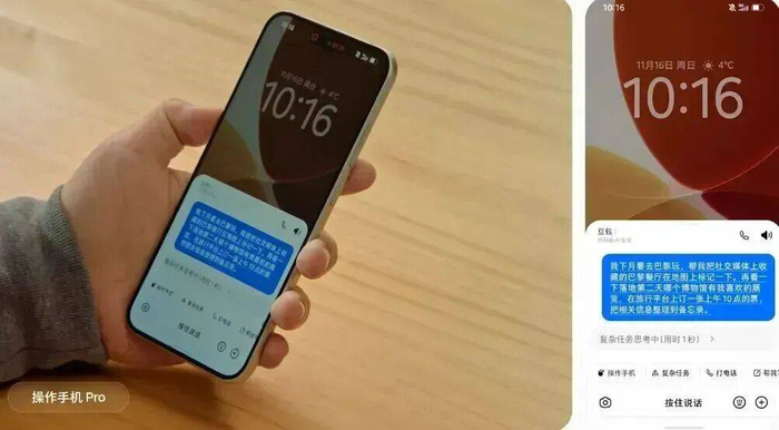 操作手机方面,这款手机能够一句话全平台比价并下单,且在需要提供额外信息或涉及支付的高敏环节会通知用户进行手动处理。