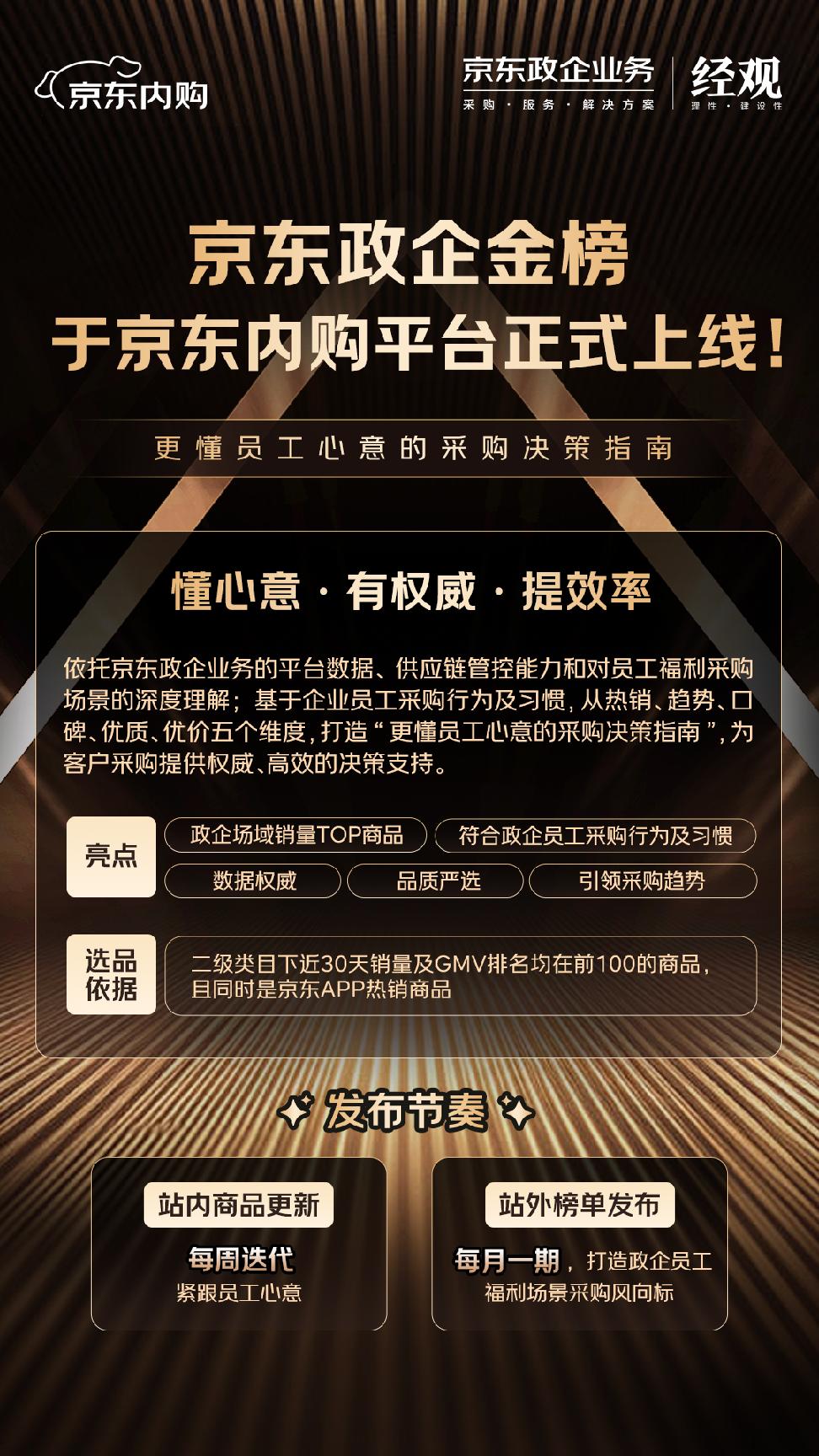 4月13日,京东政企业务联合《经济观察报》正式发布了首期基于京东内购大数据的金榜榜单(文末附)。这份覆盖智能手机、智慧厨电、京造百货、健康养生、车居养护、金谷香米、国民好油以及美肤欢颜八大品类的福利商品TOP 10榜单,不仅是一份基于真实成交数据的推荐清单,更是京东数智化技术在福利采购场景中的具体落地:它让企业采购决策者们有据可依,让员工福利更懂人心,也让品牌在企业采购领域找到新的增长路径。