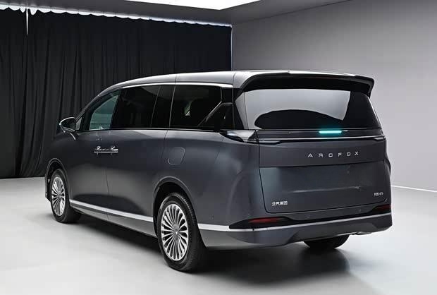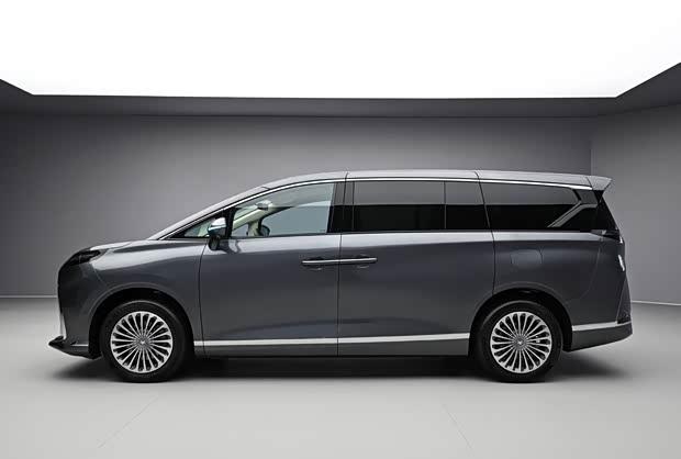 从外观来看,新车遵循ARC-FLOW设计理念,前脸造型大气舒展。贯穿式日行灯与双LED大灯形成星环样式,配合立体直瀑前格栅以及镀铬装饰的前包围,提升了整体视觉的高级感。车身尺寸方面,其长宽高分别为5300毫米、1980毫米及1850毫米,轴距为3200毫米。侧面配备电动侧滑门与多条辐轮圈,尾部则采用贯穿式尾灯与智驾小蓝灯组合,后窗视野较为开阔。