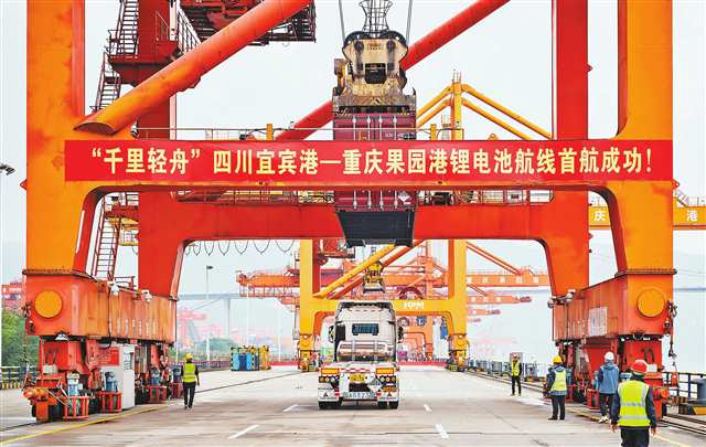 国内首条常态化锂电池水运专线(四川宜宾港—重庆果园港)打通,保障了新能源龙头企业的供应链稳定。(重庆日报资料图片)记者罗斌摄/视觉重庆