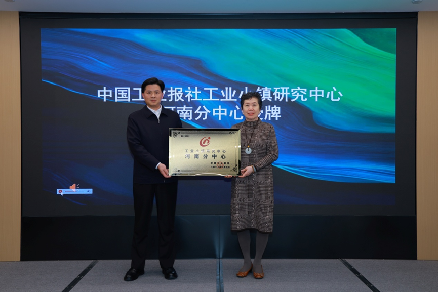 贾楠为中国工业报社工业小镇研究中心河南分中心颁牌