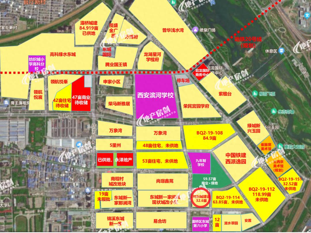 其中,BQ2-19-116号地在灞河西岸的东城第六小学北侧,土地面积32.604亩,是一宗纯住宅用地,容积率2.6,2022年6月初西安纺织城建设以2.4%的溢价率摘得了这块土地,楼面地价7692元/㎡。