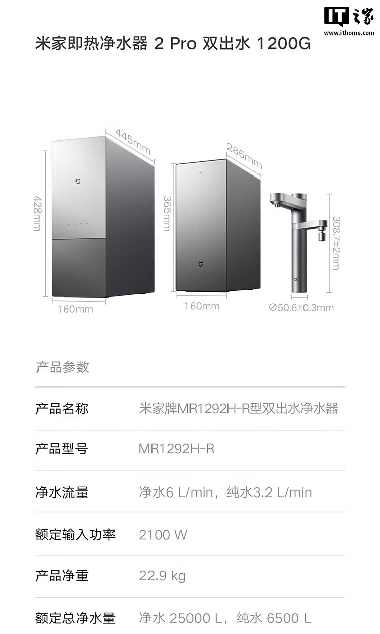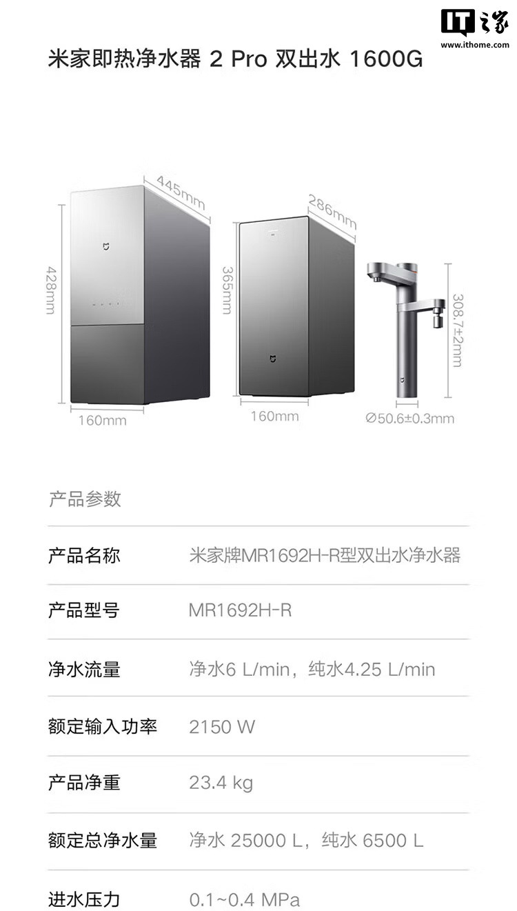 小米米家即热净水器2 Pro双出水1200G、1600G预售,3999元起