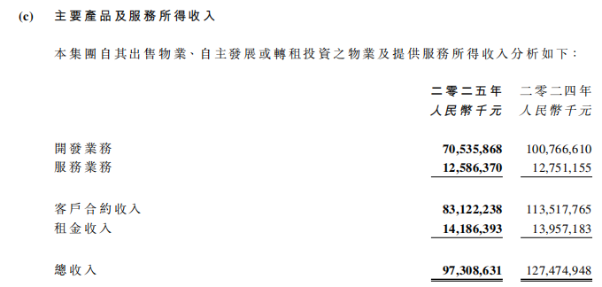2025年,龙湖集团营业收入为973.1亿元,其中,地产开发业务收入为705.4亿元,运营业务收入为141.9亿元,服务业务收入为125.8亿元。运营及服务业务收入合计为267.7亿元,占总营业收入提升至27.5%。
