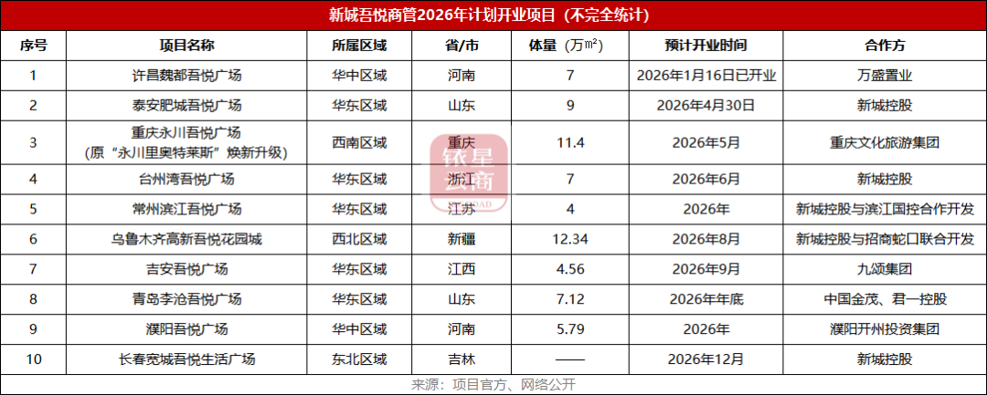 2026年计划新开9座商场