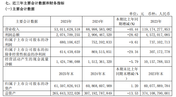 新城控股2025年实现营业收入530.12亿元,同比减少40.44%,主要原因为房地产交付收入较去年有所减少。利润总额为20.75亿元,实现归属于上市公司股东的净利润6.80亿元,是为数不多仍保持盈利的民营房企。