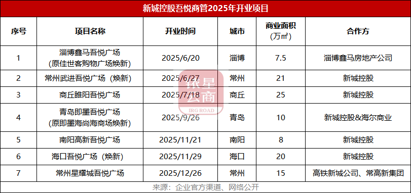 在商业管理方面,吾悦商管将坚守“吾悦经营五步法”,计划2026年实现商业运营总收入145亿元,新开业吾悦广场5座,根据铱星云商的统计,这个开业计划数量应该仅指自持商业项目。
