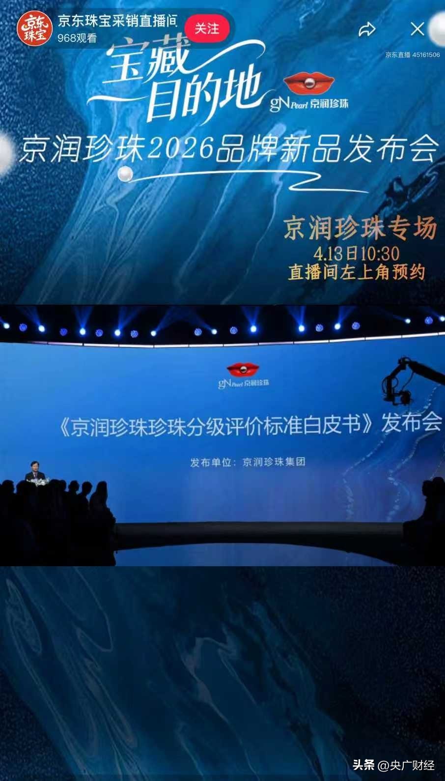 4月12日,京润珍珠在京东独家首发“方圆奕境”“力劈沧海”等系列新品,并在京东采销直播间同步直播2026新品发布会,带来珍珠项链、耳钉、手链等全品类珍珠新品,京东珠宝采销直播间更是推出首发直降300、专属券、限时折扣、礼盒包装等多重新品福利。