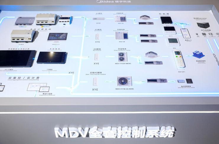 现场还展示了MDV多联机全套控制系统,实现从末端设备到云端管理的智能空调管控方案,助力用户高效运维、智能控制。